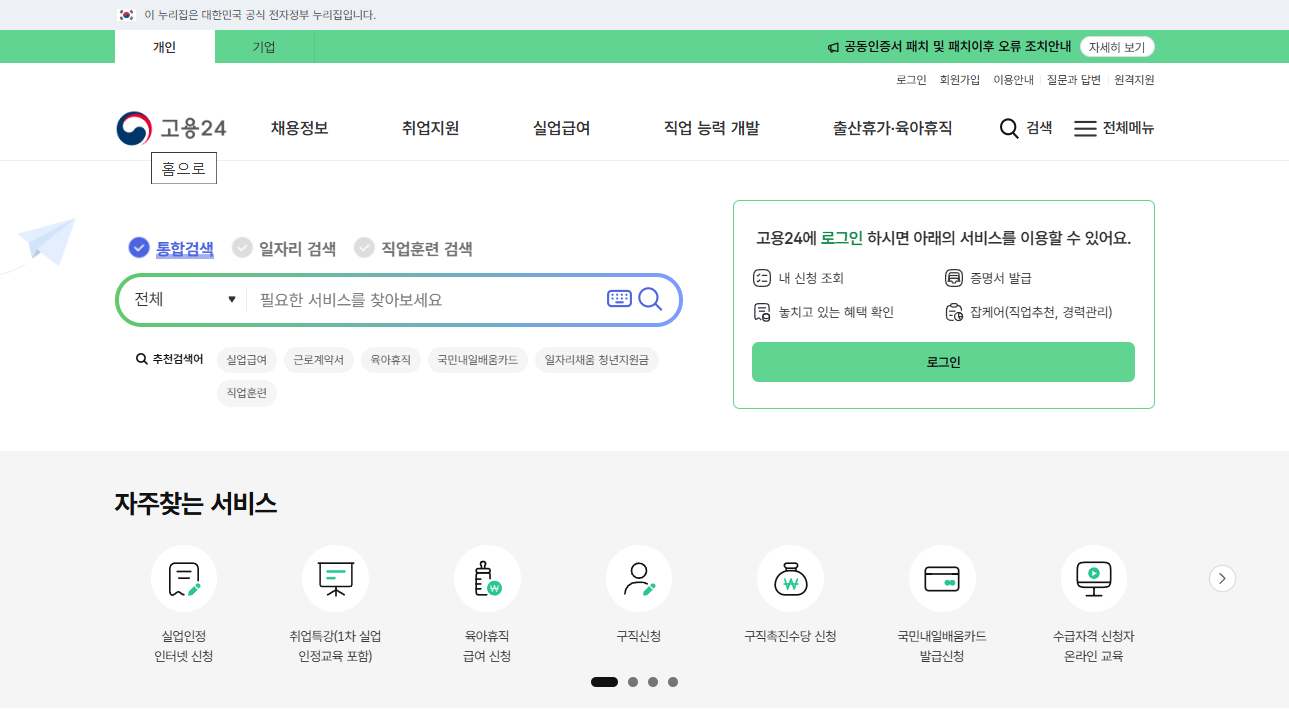온라인 고용보험 홈페이지(https://www.ei.go.kr)나